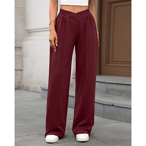 Per donna Pantaloni Eleganti Dritto Streetwear Casual Lunghezza intera Naturale Semplice Tasca Elastico in vita Confortevole Streetwear Ferie Weekend Rosso violaceo blu navy Nero Verde militare