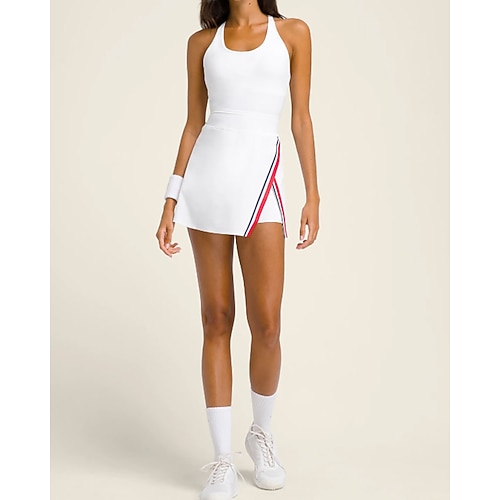 Per donna Tinta unita Abito da tennis con pantaloncini Abito sportivo Senza Maniche Con zip Tasca Incrociato dietro Elastico Traspirante Tennis Corsa Fitness Scollo Tondo Vestito Nero Bianco Blu