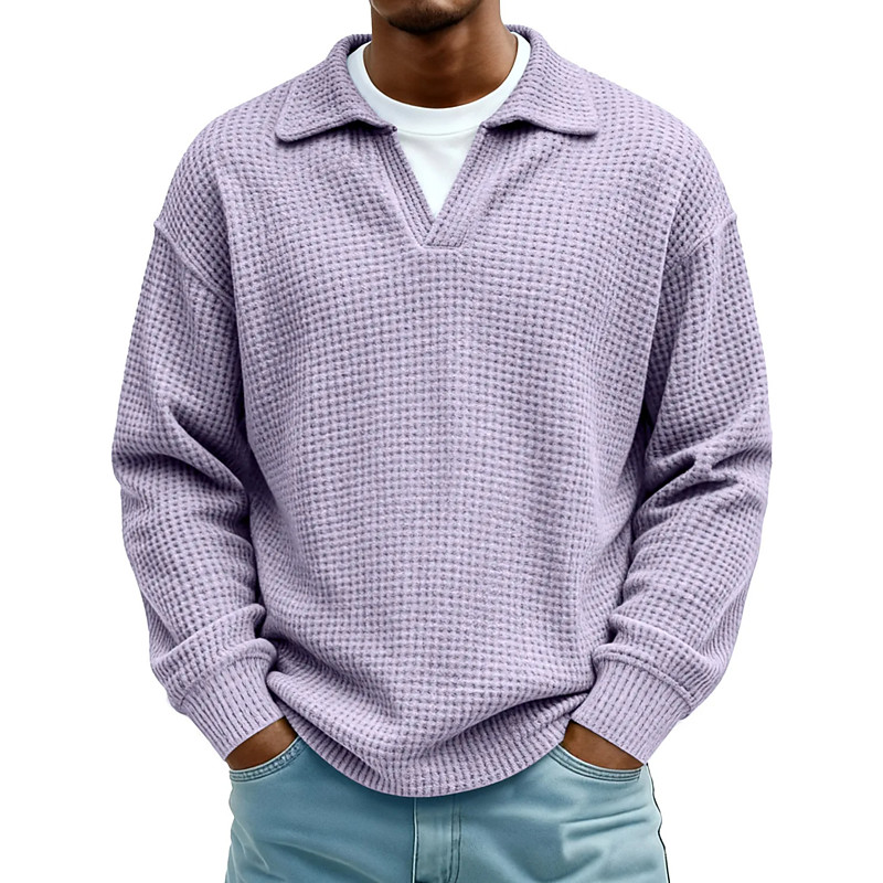 Men's Waffle Polo Shirts Polo Shirts Formal Business Ribbed Polo Collar Long Sleeve Fashion Solid Color Buttons Plain Fall Spring Fall Loose Fit Black Light Green Green Light Blue Purple Khaki