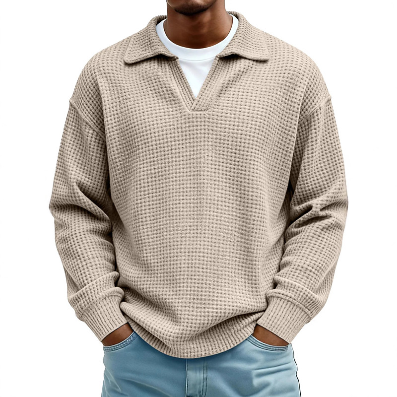 Men's Golf Polos Shirts Waffle Knit Polo Shirt Casual Business V Neck Long Sleeve Fashion Basic Solid Color Knitting Fall Winter Regular Fit Black White Light Green Red Navy Blue Sky Blue Golf Polos