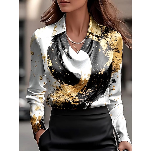 Per donna Camicia Camicia da lavoro Ombre Grafico Elegante Casual Manica Lunga Colletto a Camicia Top Regolari Lavoro Abbigliamento da sera Quotidiano Glitter Rosa Blu Viola Oro Verde Primavera