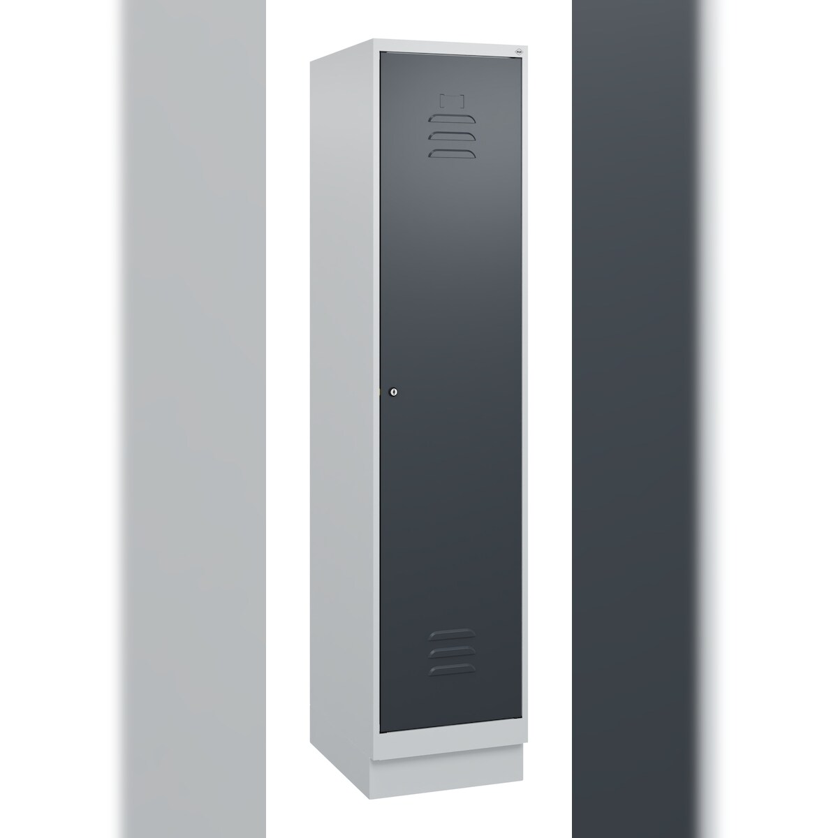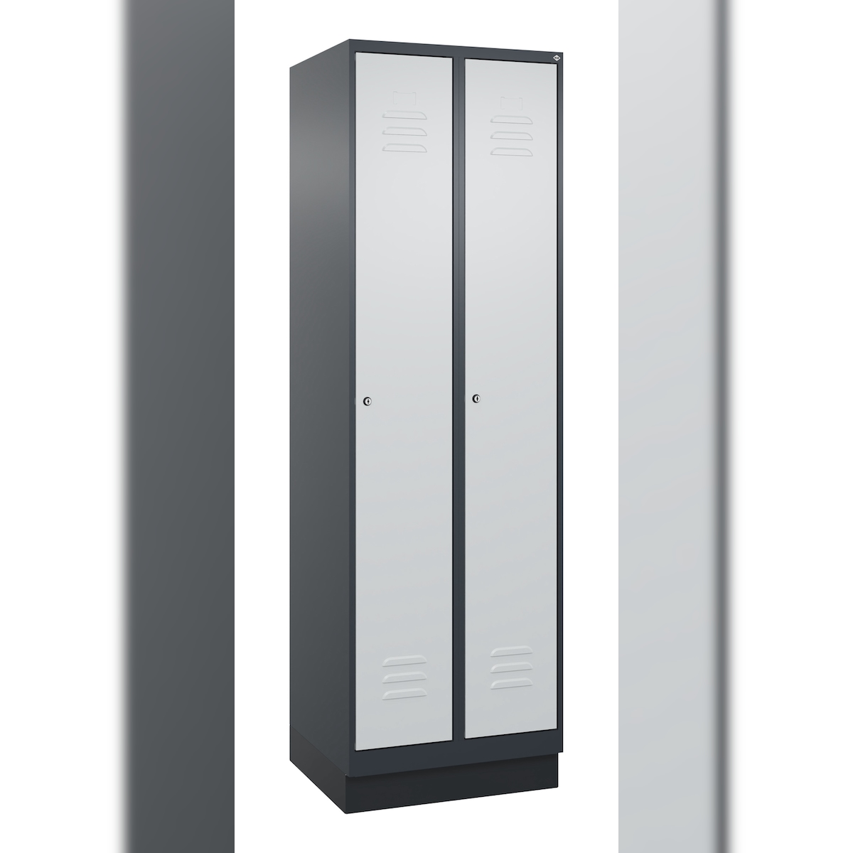 C+P Spind Classic PLUS, Sockel, 2 Abteile, HxBxT 195x60x50cm, Zylinderschloss, Anthrazit/Hellgrau von PROREGAL