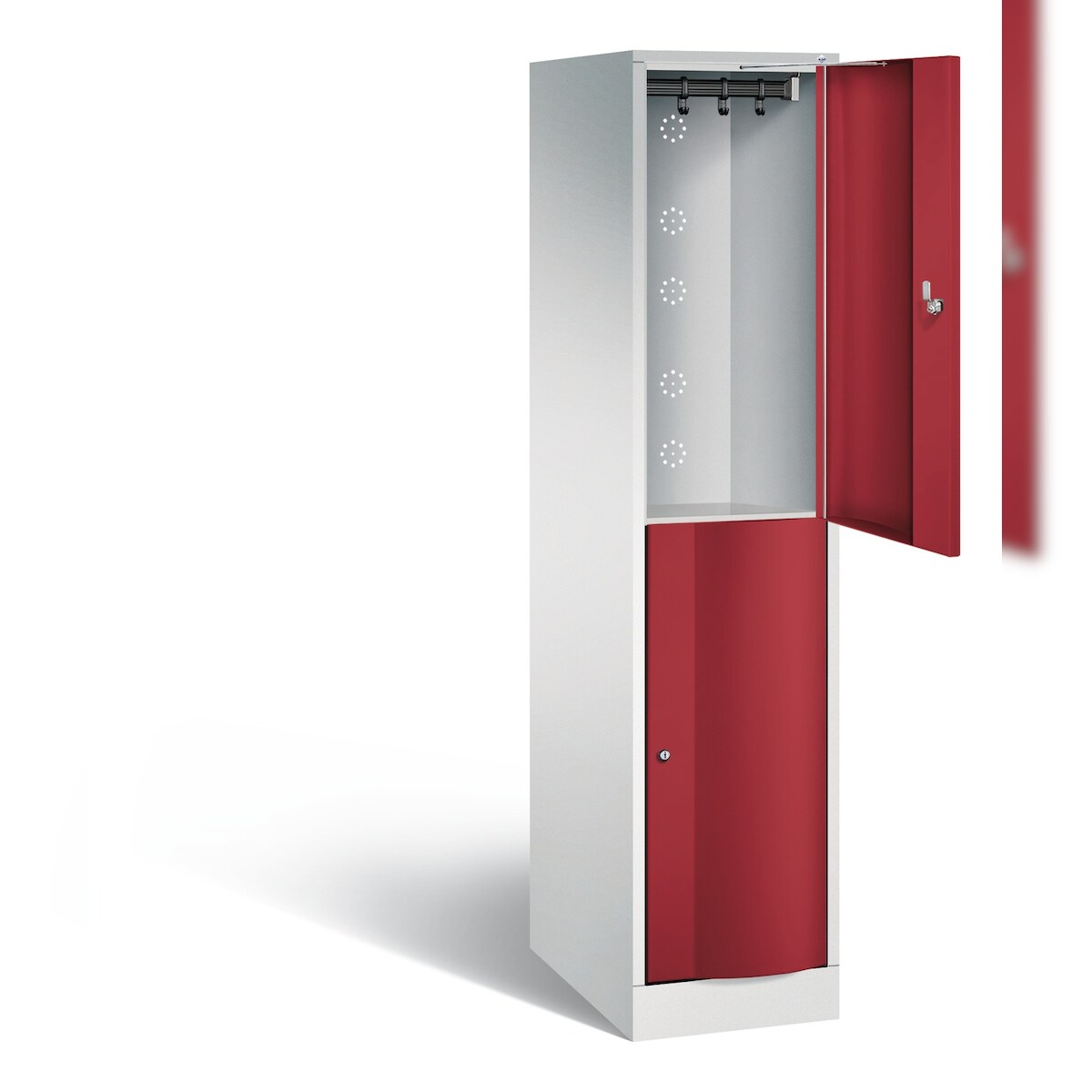 C+P Spind Classic PLUS, 2 Abteile, HxBxT 185x60x50cm, Zylinderschloss, Hellgrau/Rot von PROREGAL