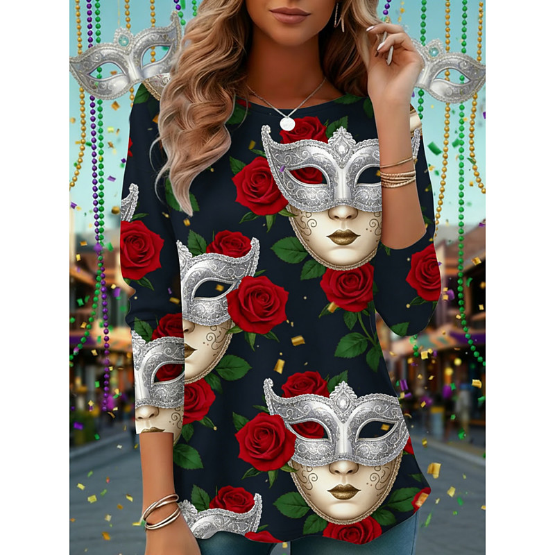 Carnival Women's T Shirt Tee Top Floral Graphic Fashion Stylish Casual Long Sleeve Crew Neck Regular Tops Daily Weekend Vacation Wear Print Red Summer Spring