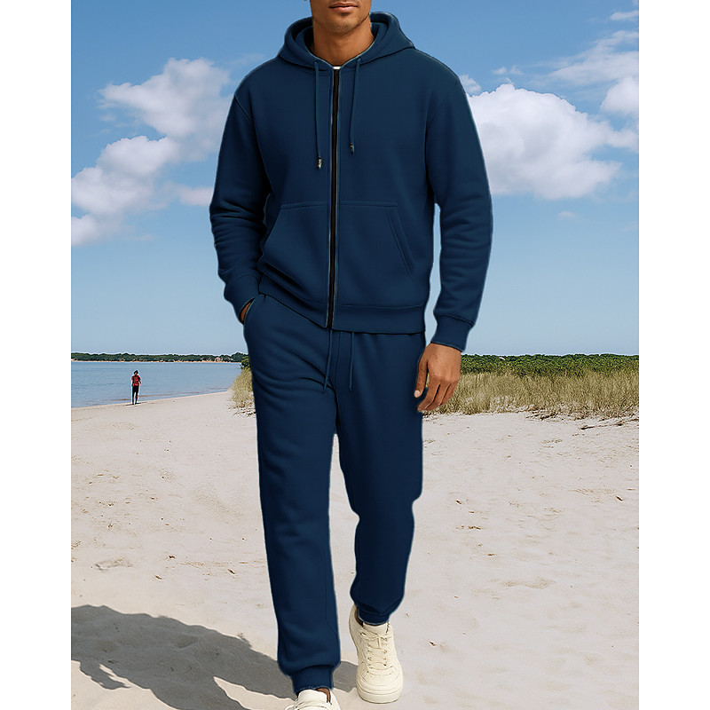 Men's Tracksuit Outfit Set Hoodies Set Hoodie Outdoor Daily Sports Drawstring Zip Up Pocket Plain Black Navy Blue Brown Polyester Activewear Fashion Streetwear Fall