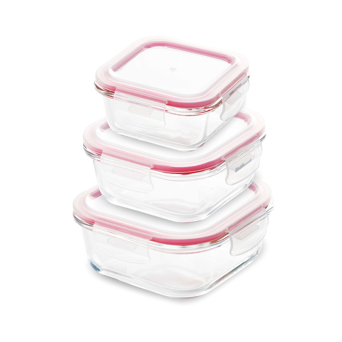 BERGNER - Set mit 3 quadratischen, luftdichten Lunchboxen aus Borosilikatglas in Rot