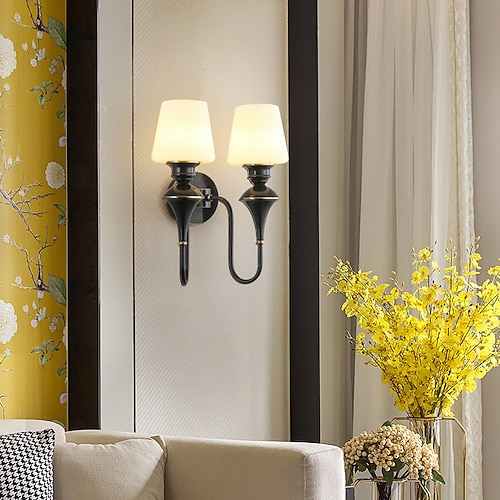 applique con paralume in vetro opaco geometrico adatta per led/incandescenza/fluorescenza - 3 luci nero