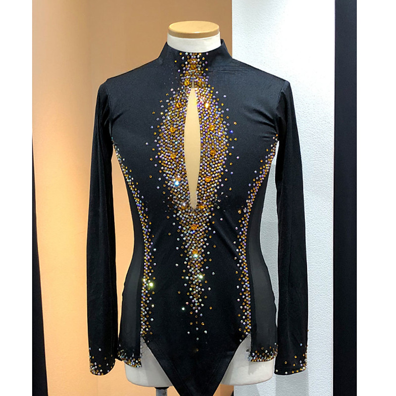 Figure Skating Top Men's Boys' Ice Skating Tops Black Patchwork Spandex High Elasticity Training Competition Skating Wear Classic Crystal / Rhinestone Long Sleeve Ice Skating Figure Skating
