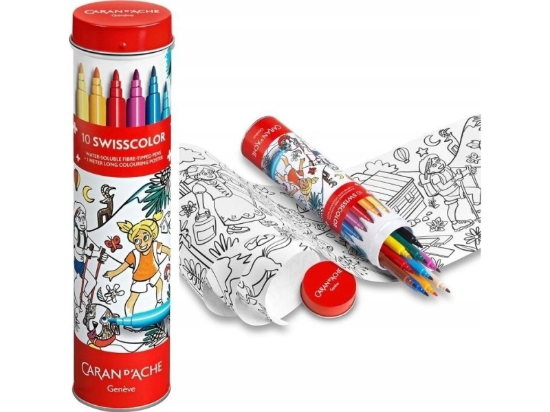 Caran d`Arche CARAN D'ACHE Sveitsiske akvarelltusjer, i metallrør, med fargeleggingsbok, 10 stk., blanding av farger