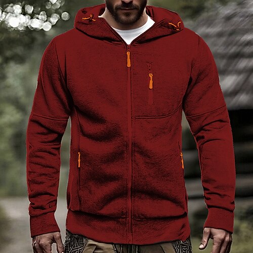Per uomo Felpa con cappuccio Felpa con cappuccio a zip intera Nero Bianco Vino Verde militare Blu marino Con Cappuccio Semplice Cerniera Tasca Sport Outdoor Quotidiano Ferie Poliestere Streetwear