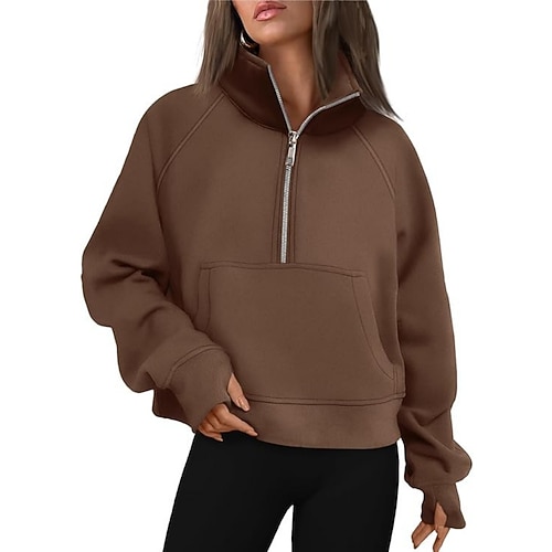 Per donna Pullover Felpe Felpe con cerniera Semplice Moda Classico Moderno Manica Lunga Mezza zip Top Regolari Streetwear Abbigliamento Quotidiano Nero Bianco Vino Cammello Marrone Primavera Autunno