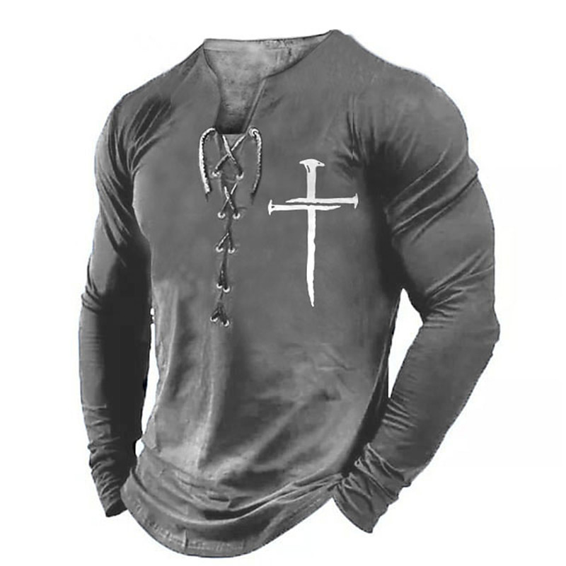 Men's Graphic Faith T Shirt Long Sleeve T shirt 3D Print Collar Shirt Fashion Daily Outdoor Casual Holiday Going out Black Burgundy Green Spring Fall Clothing Apparel S M L XL 2XL 3XL