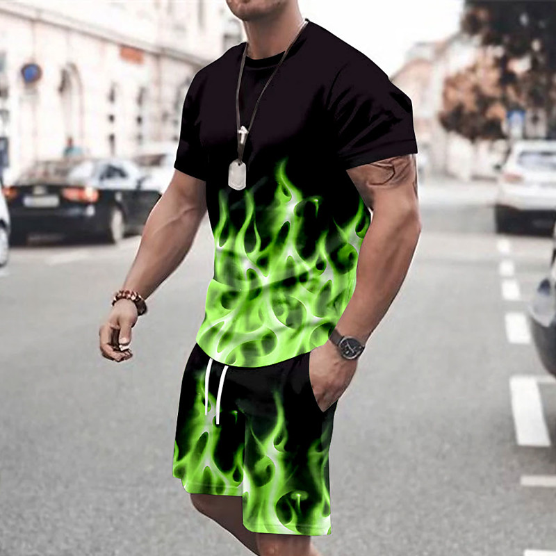 Men's Graphic 2pcs Tees sets Summer Tops Short Sleeve Short Pants Crew Neck Sport Casual Outdoor Vacation Sport 3D Print Summer Black Blue Green