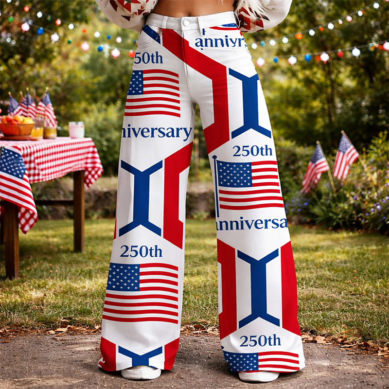 American 250 Retro Vintage 1970s Pants Wide Legged Pants Hippie Disco High Waist Fancy Dress Women's Masquerade 4th of July Party Independence Day Semiquincentennial Adults' Pants
