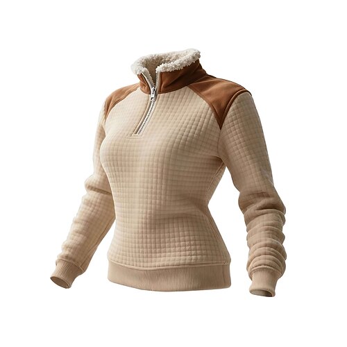Per donna Felpa Pullover Blocco di colori Elegante Vintage Moda Manica Lunga Collo Alto Top Regolari Casuale Abbigliamento Quotidiano Ferie Cerniera Kaki Beige Autunno Inverno