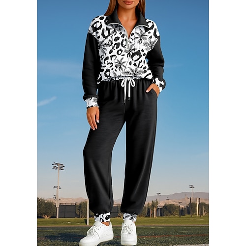 Per donna Maglia Tuta da Ginnastica Tuta da 2 pezzi Coulisse Con zip Floreale Completo Abbigliamento Autunno Nero Lavoro All'aperto Viaggio Leggero Di tendenza Manica Lunga Sport Abbigliamento