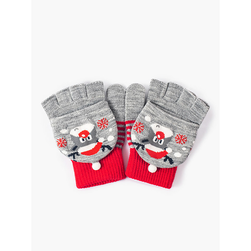 Christmas Reindeer Fingerless Gloves with Flip Mittens – Warm Knitted Winter Holiday Gloves for Women and Girls