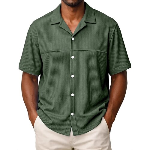 Per uomo Camicia Camicia button-down Camicia di Velluto a Coste Blu Nero Bianco Rosso Blu marino scuro Manica Corta Semplice Bavero Quotidiano All'aperto Bottoni Abbigliamento Streetwear Casual
