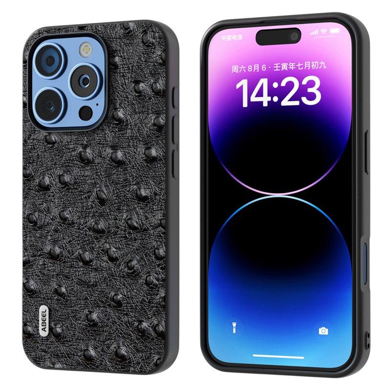 ABEEL Mobilskal till iPhone 16 Pro Äkta Läder Ostrich Textur Svart