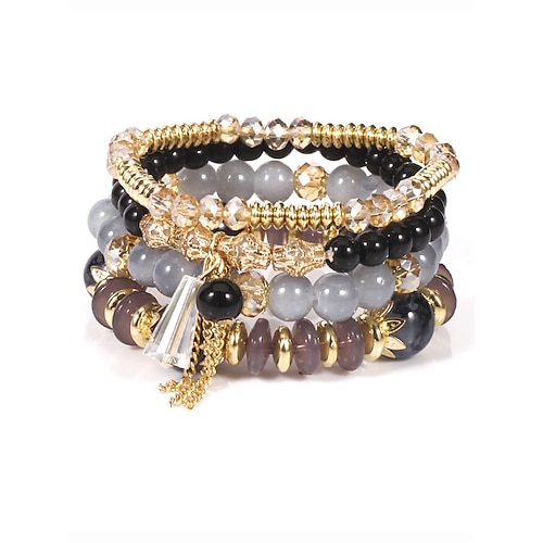set di braccialetti da donna con perline di cristallo finto e accenti dorati, braccialetti elastici a strati in stile boho per feste, matrimoni e uso quotidiano