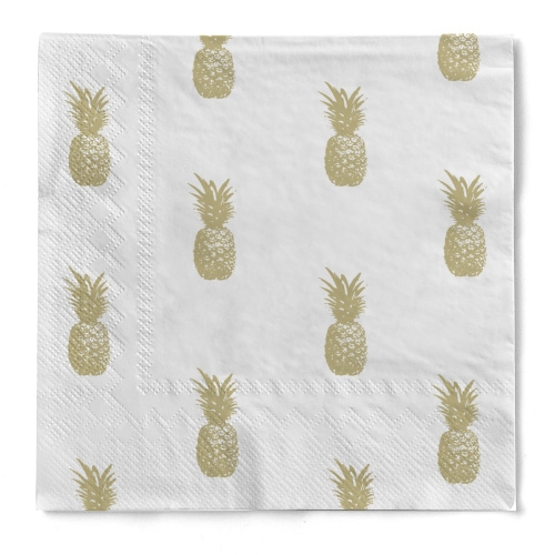 Cocktail-Serviette "Pinea" (Ananas) in Gold aus Tissue 3-lagig, 25 x 25 cm, 20 Stück