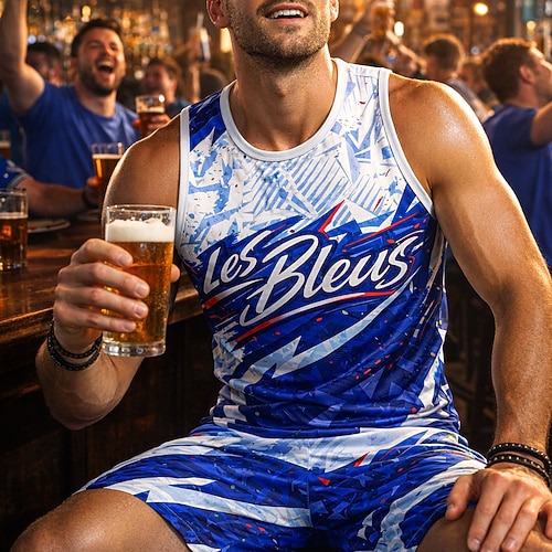 Herren Fußballtrikot Geometrisch Buchstabe Frankreich Workout-Tanktop Lauf-Tanktop Sport-T-Shirt Sommer Ärmellos UPF 50 Schnelltrocknend Feuchtigkeitsableitend Atmungsaktiv Turnier Fußball Leger