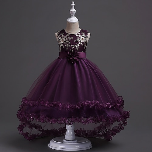 Blumenmädchenkleid Mädchen Formelle Kleidung Hochzeitskleidung Party Hochzeit Formell Elegant Mode Schön Netz Blumen Ärmellos Rundhalsausschnitt Grau Marineblau Ab 4 Jahren