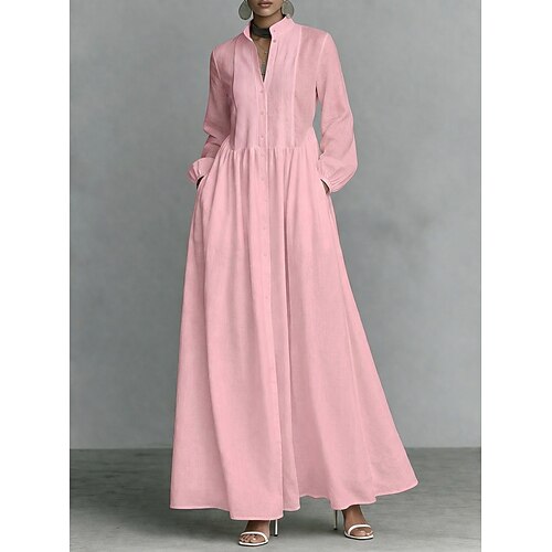 Per donna Abito maxi Abito Camicia Abito Bianco Abito da laurea Elegante Moda Moderno All'aperto Vacanza Uscire Vestibilità regolare Semplice Manica Lunga Collo Alto Blu Nero Bianco Rosa Estate