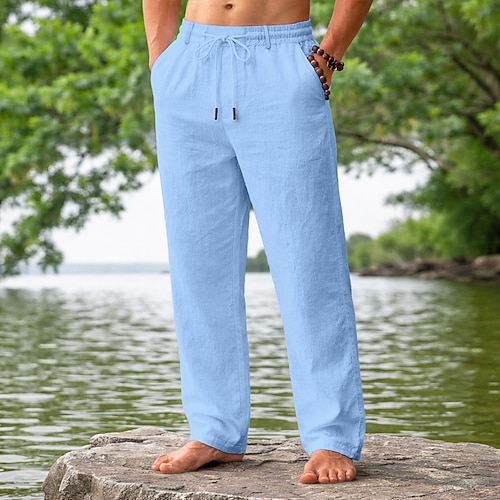 Per uomo Pantaloni di Lino Pantaloni Pantaloni Estivi Pantaloni da Spiaggia Coulisse Elastico in vita Tinta unica Comodità Traspirante Quotidiano All'aperto Spiaggia Vacanza Moda Blu Nero
