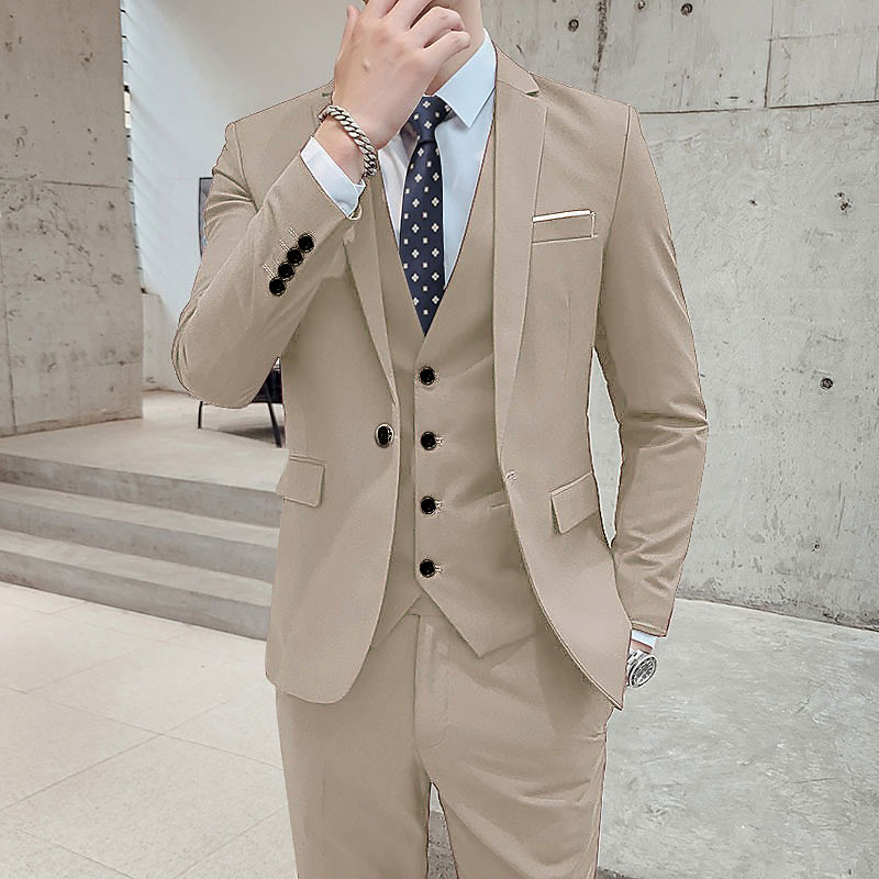 Men's Wedding Party Suits Notch Dark Khaki Blackbeige Solid Colored Tailored Fit 3 Piece Single Breasted One-button
