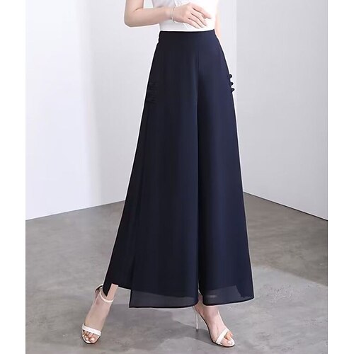 Per donna Gamba larga Chinos Elegante Moda Streetwear Lunghezza al polpaccio Vita Alta Semplice Comodo Comodità Morbido Micro-elastico All'aperto Vacanza Streetwear Verde mela Vinaccia blu navy Nero