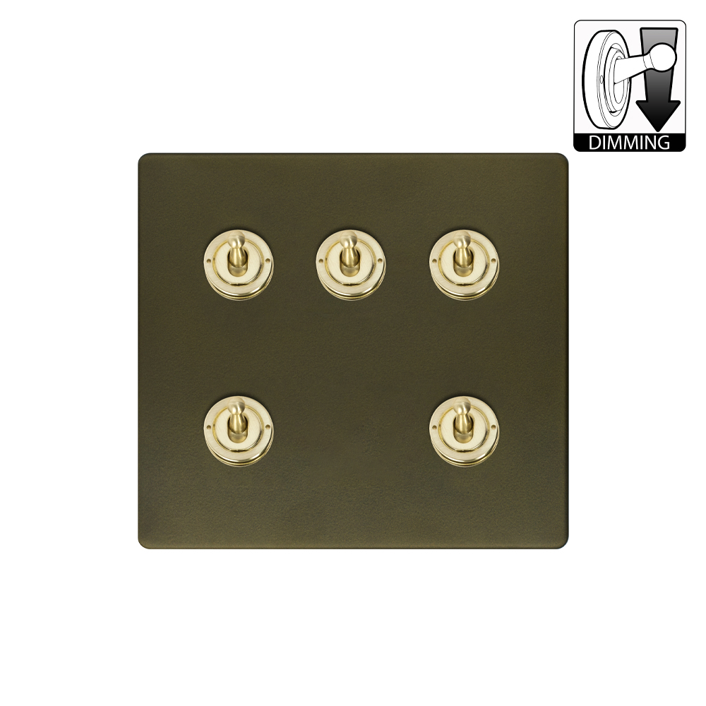 Soho Lighting Lighting Bronze & Brushed Brass 5 Gang Dimming Toggle Switch