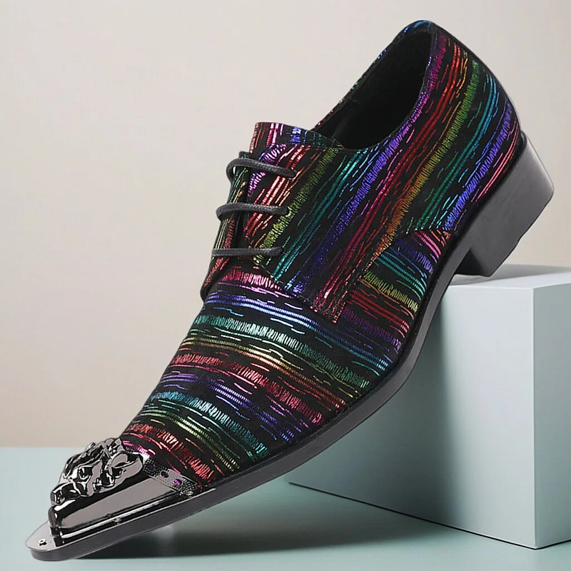 Men's Multicolor Iridescent Dress Shoes, Shiny Patent Leather, Stylish Pointed Toe Shoes for Formal Events and Special Occasions