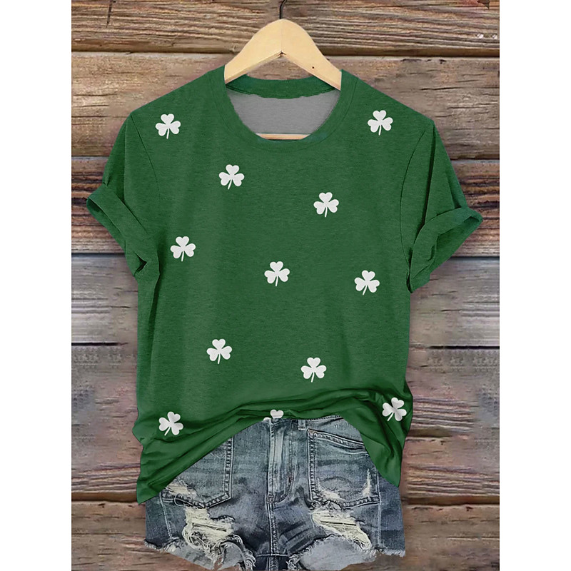 St. Patrick Women's T Shirt Plants Casual Short Sleeve Round Neck Regular Tops Daily Print Green Summer