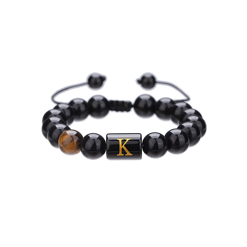 Men's Adjustable Natural Stone Bracelet with Alphabet Letter Design, Customizable with 26 Letters, Perfect for Gifting, Casual and Special Occasions