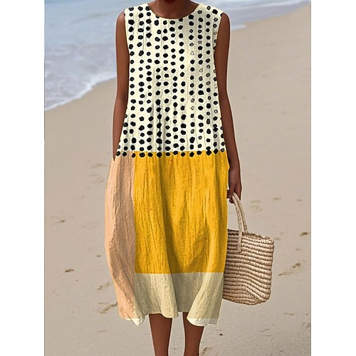 Per donna Abito Midi Vestito Estivo Abito a Tubino Abito a trapezio Vacanza Casual Boho Spiaggia Uscire Vestibilità comoda Grafico Geometrico Senza Maniche Girocollo Nero Giallo Rosa Marrone Estate