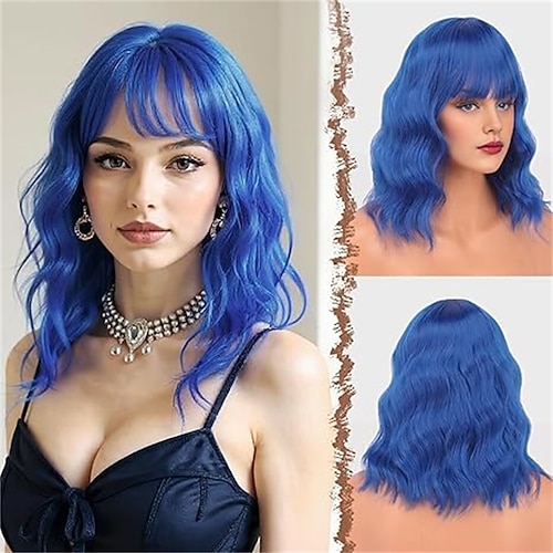 Blaue Bob-Perücke mit Pony, kurze, glatte Bob-Perücke mit Pony, 30,5 cm, Kunsthaar, natürlich aussehend, für den täglichen Partygebrauch # Babyblau