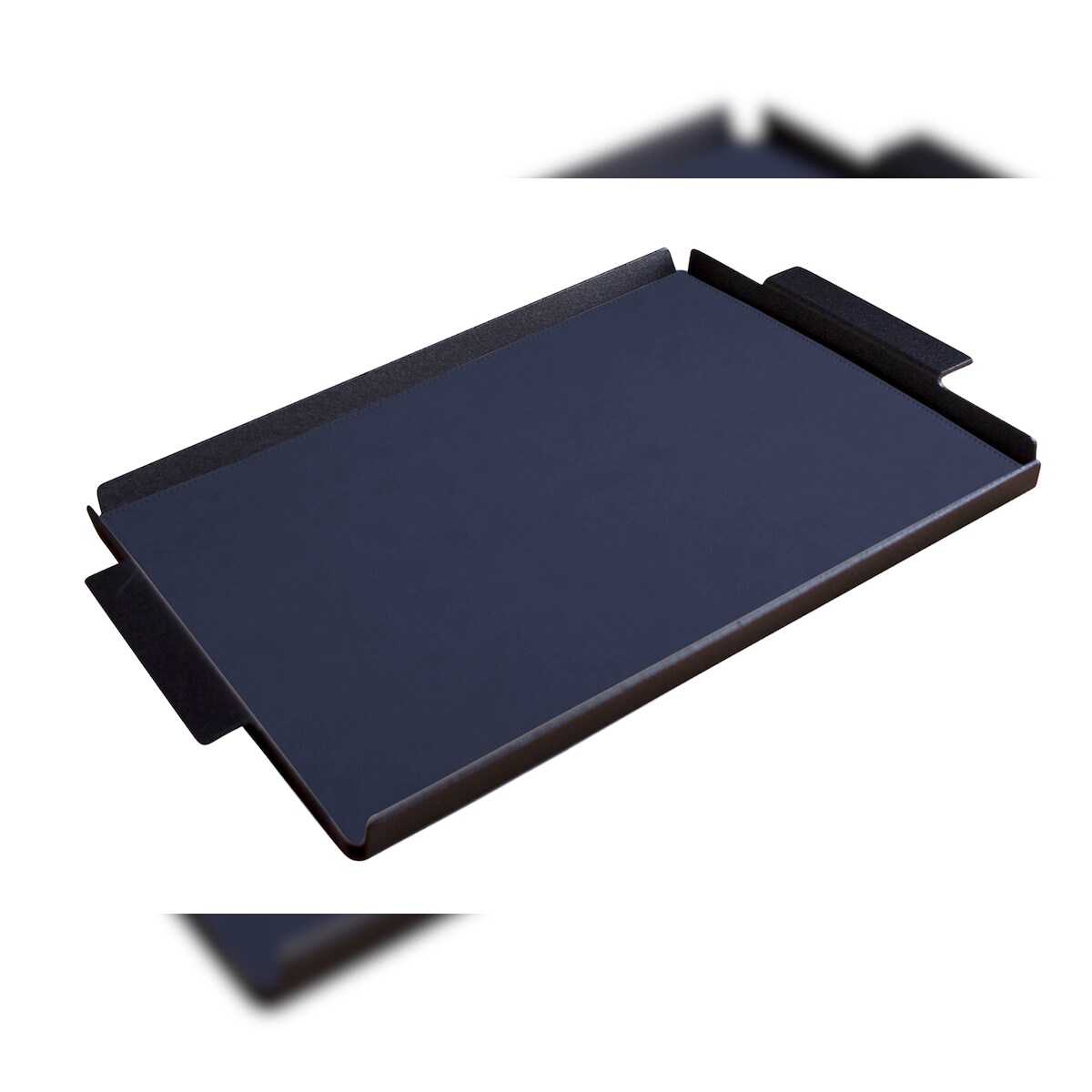 Stil Casa, 6er Set Serviertabletts, schwarz lackiertes Aluminium, Deckel aus genähtem, laminiertem Polyurethan, 35x45xh. 0,2 cm, Farbe blau.