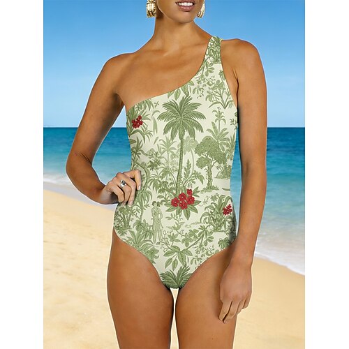 Per donna Costumi da bagno Intero Monokini Costume da bagno Controllo della Pancia Vita alta Snello Monospalla Senza schiena Vacanza Abbigliamento da Spiaggia Floreale Tropicale Collo asimmetrico