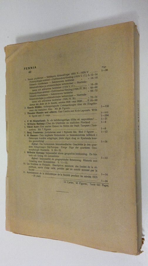 Theodor Homen : Fennia 42 : Antropologische Untersuchungen uber die Eingeborenen des russischen Altai ; East Carelia and Kola Lapmark : described ...