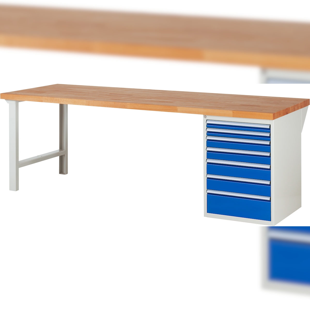 PROREGAL Werkbank Serie 7000 - Modell 7517 | HxBxT 84x250x90cm | 7x Schublade | Schubladenmaße 2x60 + 2x90 + 2x120 + 1x180mm