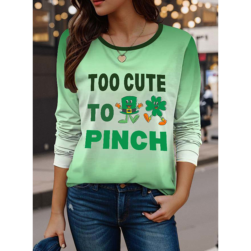 St. Patrick's Day Women's T Shirt Fashion Cute Long Sleeve Crew Neck Regular Tops Vacation Going out Green Spring Fall Winter