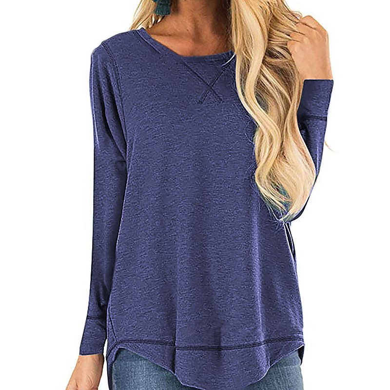 Women's Shirt Blouse Plain Stylish Casual Long Sleeve Crew Neck Regular Tops Daily Patchwork Black Navy Blue Sky Blue Gray Summer Spring Fall