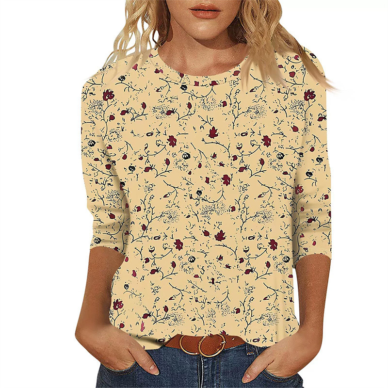 Women's Shirt Tree Bohemia Daily Casual 3/4 Length Sleeve Crew Neck Regular Tops Daily Holiday Print Blue Orange Green Summer Spring Fall