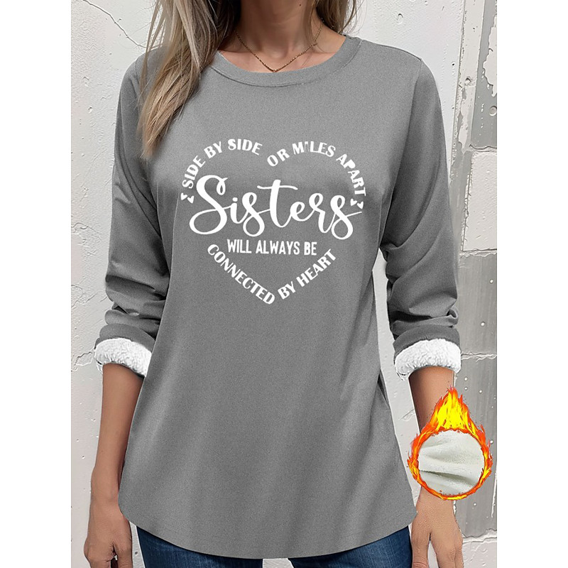 Women's Pullover Sweatshirt Letter Casual Comfrt Long Sleeve Crew Neck Regular Tops Street Dailywear Print Black Pink Blue Gray Fall Winter