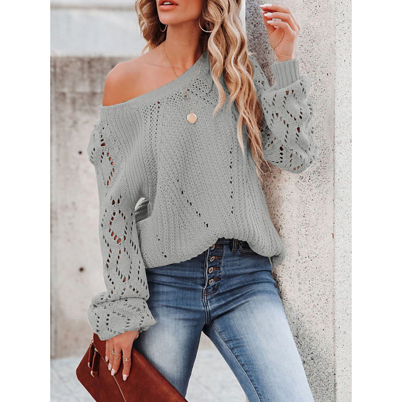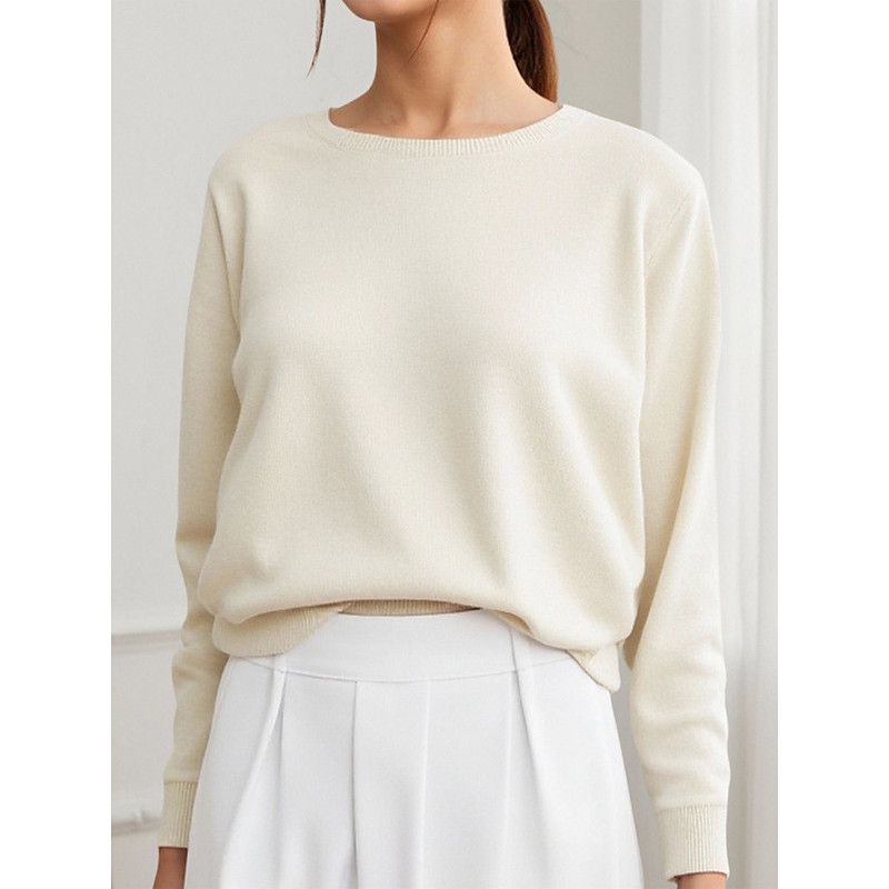 Women's Pullover Elegant Vintage Daily Solid Color Ribbed Crew Neck Knitted Long Sleeve Regular Tops Knit Formal Outdoor Home Black White Spring Fall