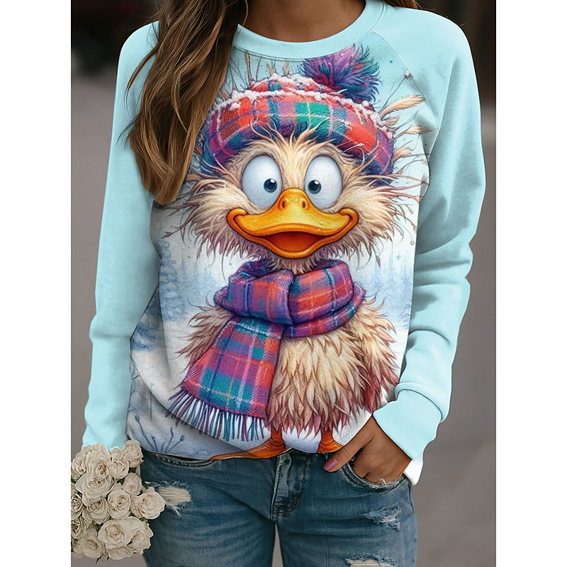 Women's Sweatshirts Graphic Animal Casual Long Sleeve Crew Neck Regular Tops Casual Holiday Print Yellow Red Blue Purple Fall Winter
