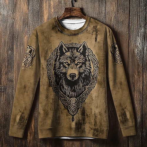 Per uomo Maglia Blu Marrone Verde Girocollo Lupo Nodo celtico Stampato Casuale Quotidiano Abbigliamento casual alla moda Vintage Vichingo Autunno Inverno Abbigliamento Felpe con cappuccio Felpe