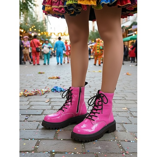 Stivali da combattimento in vernice verde con stampa coccodrillo per donne – scarpe alla caviglia lucide con lacci per il Carnevale festival e stile di strada audace