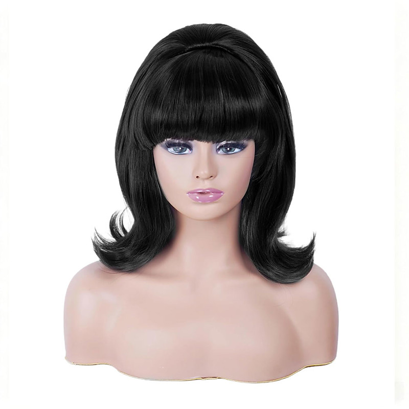 Long Brown Mixed Wig with Bang Retro Bouffant Beehive Wigs fits 80s Costume or Carnival Party Halloween Wigs